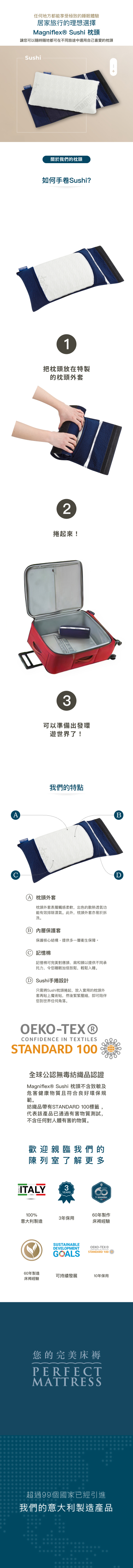 Sushi is ideal if you want to have your own pillow with you at all times, even when you are travelling or on the move. The Viscose cover and interior in Memoform offer the comforts of home anywhere you are.