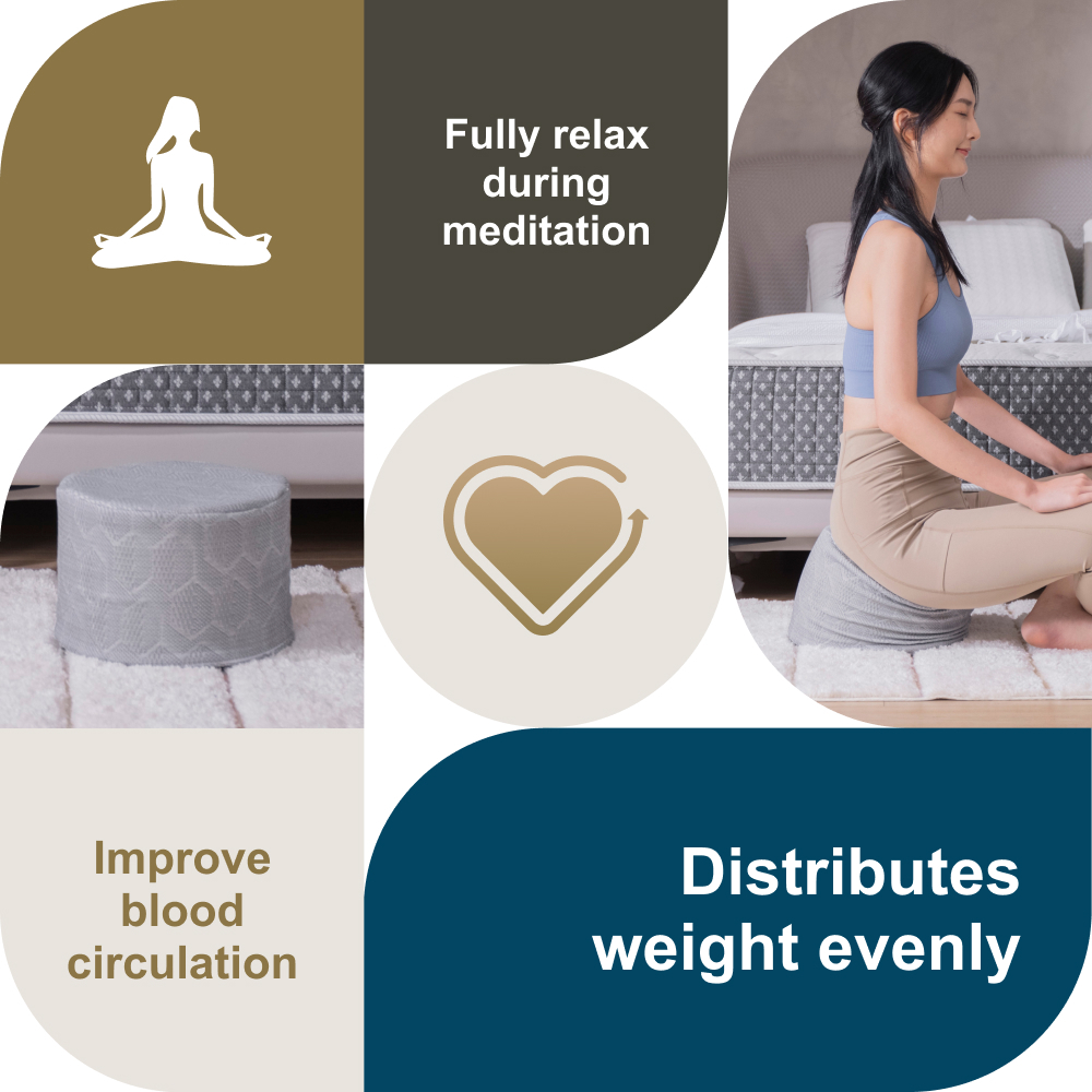 Zafu is a soft, ergonomically-shaped seat to fully relax your body during meditation.