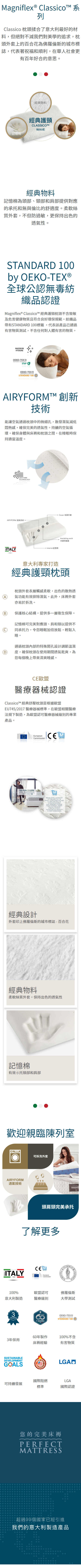 100%意大利製造,其經典設計配合透氣記憶棉,不但確保睡眠期間的空氣流動,更能有效𠄘托頸部和肩部,讓你睡眠期間體驗夢幻般的放鬆。