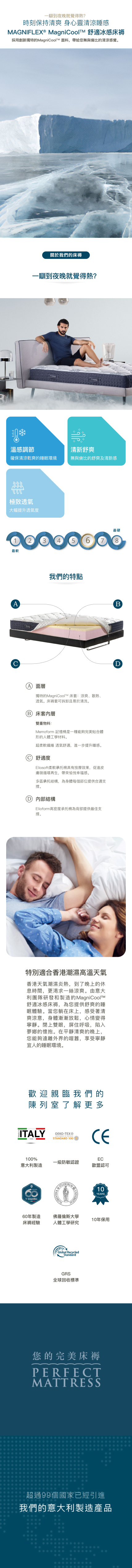採用創新獨特的MagniCool™ 面料,帶給您無與倫比的清涼感覺。獨特面料能促進空氣流動,於身體和床褥之間提供合適的體感溫度。此外,多區域人體按摩結構,給身體各部位獨立承重和微按摩效果,重新激活身體微循環。可拆洗的Magnicool™ 布料,涼爽舒適,有助散發濕氣,讓您的身體保持清爽。