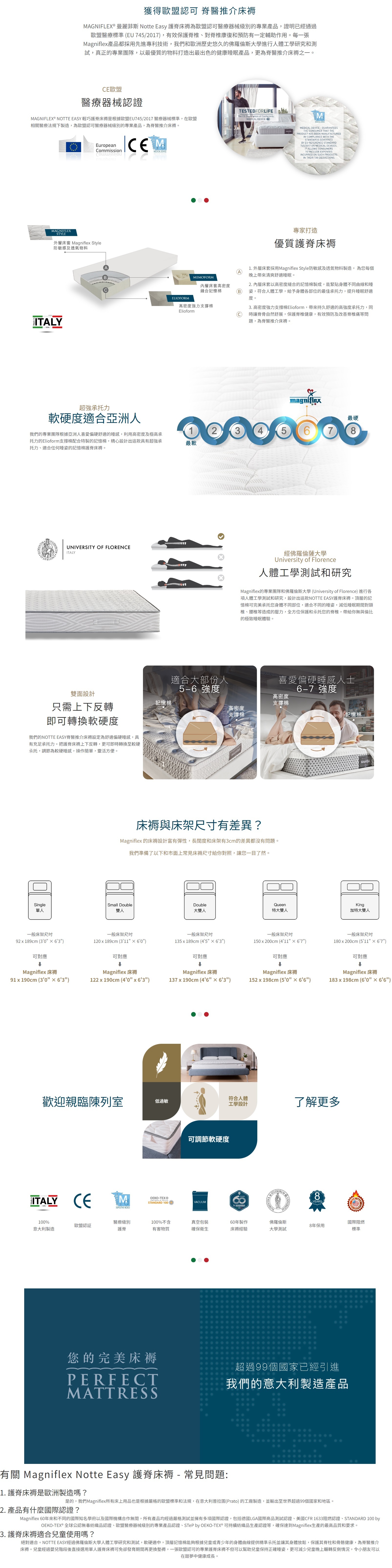 Notte Easy 護脊床褥100%意大利製造,具有歐盟認可的醫療級別認證、屬脊醫推介床褥。