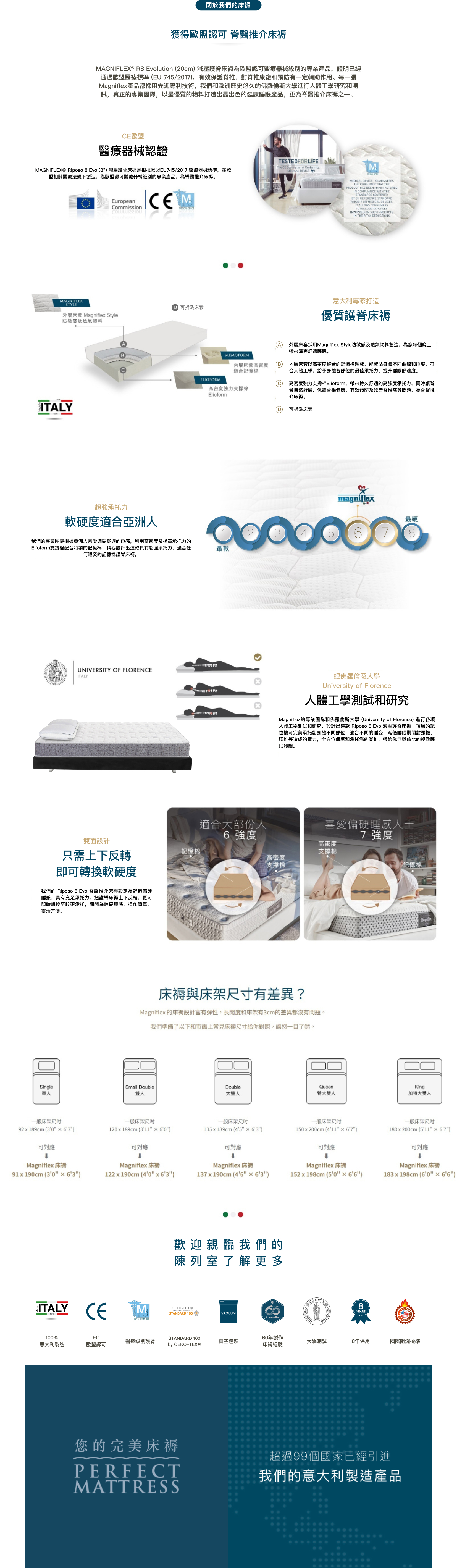 R8 EVOLUTION 護脊床褥100%意大利製造,具有歐盟認可的醫療級別認證、屬脊醫推介床褥。